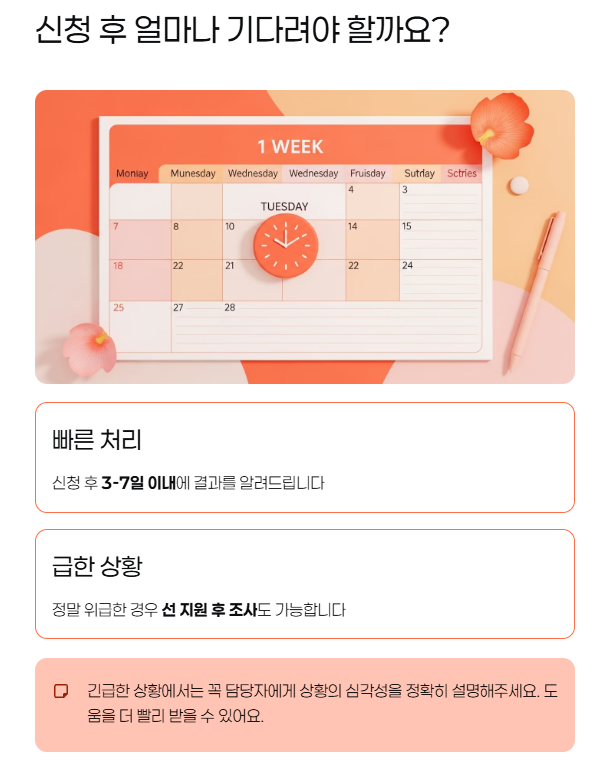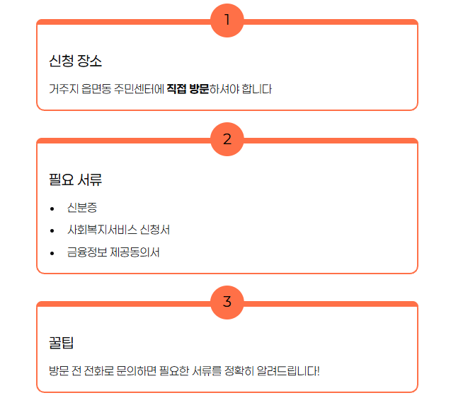 꿀팁: 전화할 때 "긴급복지 생계지원 신청하고 싶다"고 말하면 담당자와 바로 연결해 줘요.