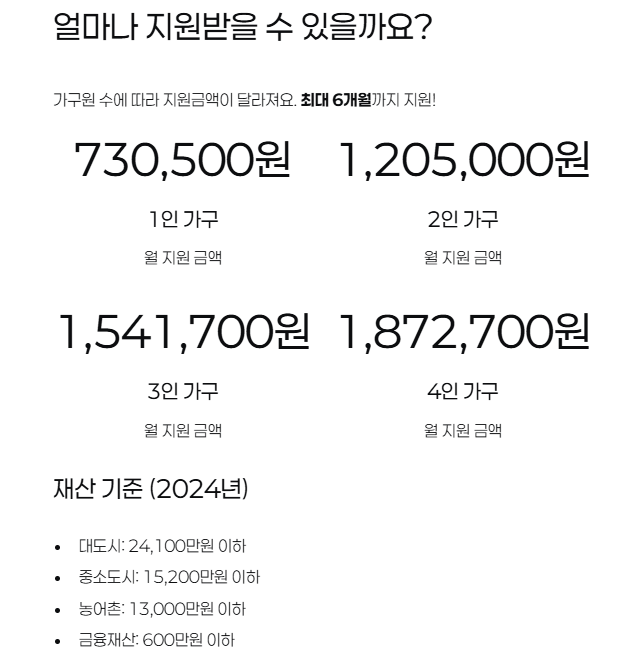 가구원 수에 따라 지원 금액이 달라져요. (2024년 기준)