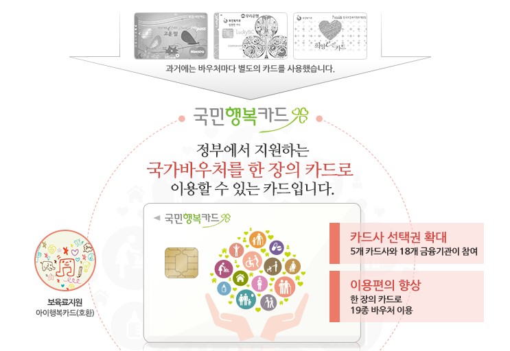 국민행복카드는 정부에서 제공하는 다양한 복지 혜택을 한 장의 카드로 통합하여 사용할 수 있도록 만든 카드입니다.