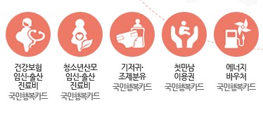 국민행복카드는 다양한 계층(임산부, 영유아 부모, 저소득층, 장애인 등)에게 각각의 맞춤형 혜택을 제공합니다.