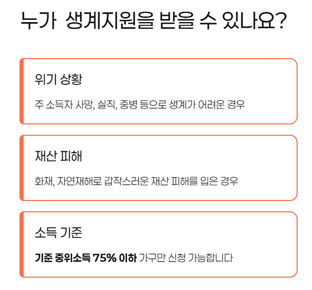 갑작스러운 위기상황에 처해서 당장 생계유지가 어려운 저소득 가구에게 신속하게 지원하는 제도예요.