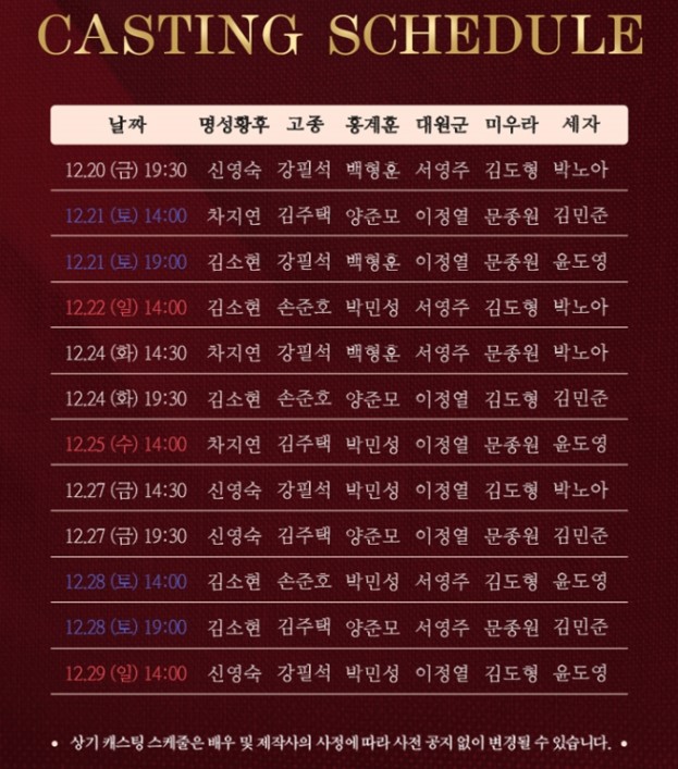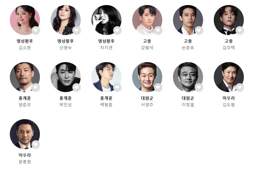 - 명성황후: 김소현, 신영숙, 차지연