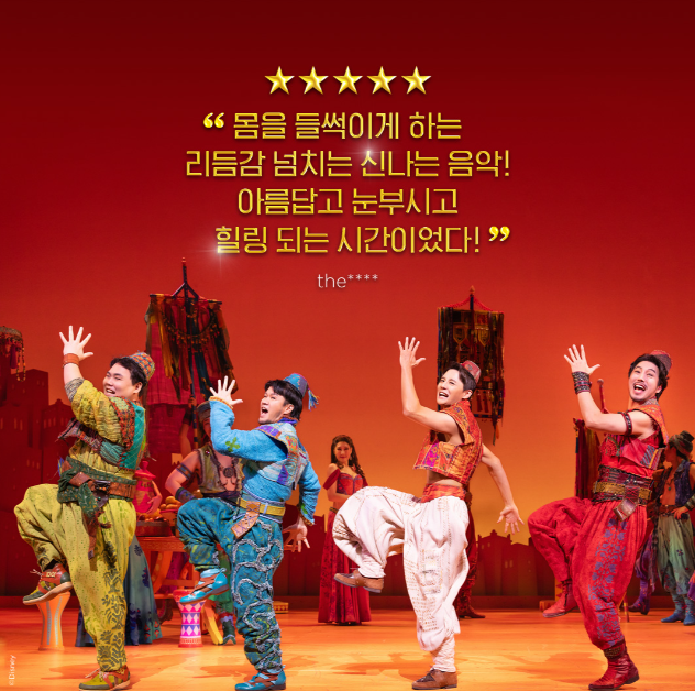 뮤지컬 『알라딘』은 정말 ‘보고 나면 입이 쩍 벌어지는’ 마법 같은 공연이에요.  화려한 무대와 배우들의 열연, 귀에 익은 넘버들까지… 관람 후에는 며칠 동안 여운이 가시질 않았어요. 이 글이 여러분의 예매와 관람에 조금이나마 도움이 되었길 바랍니다.