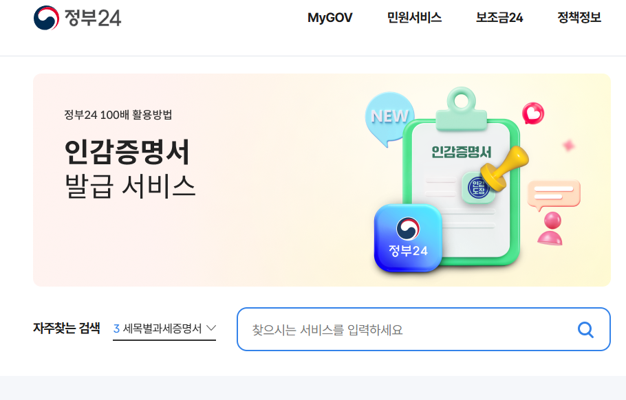 - 발급 비용은 무료이며, 24시간 365일 언제든지 신청 가능합니다.