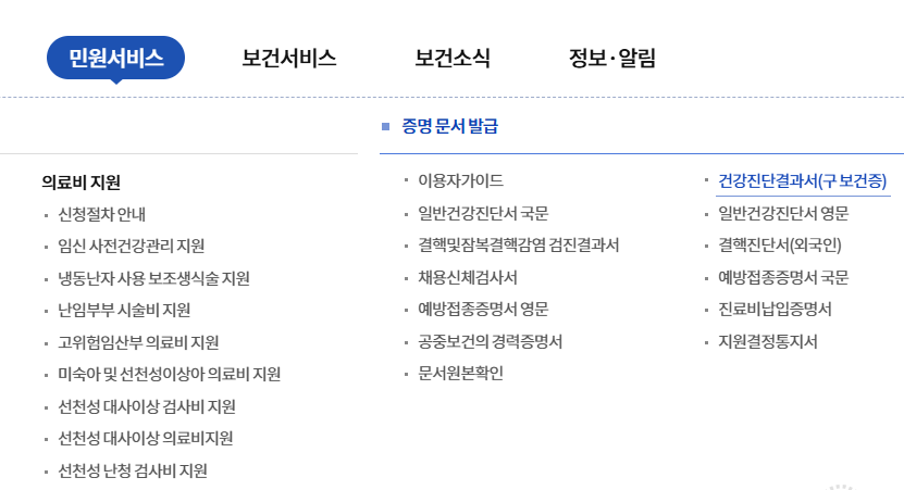 - '건강진단결과서(구 보건증)' 항목을 선택합니다.