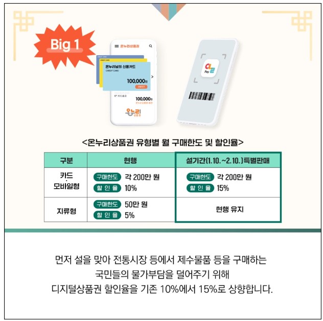설맞이 디지털 온누리상품권 특별 할인 및 환급 행사 실시