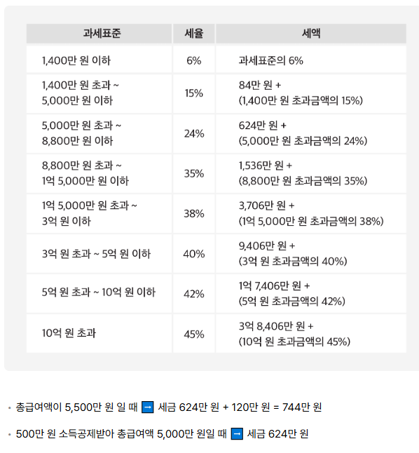 - 예시: 연간 총소득이 5,000만 원이고 소득공제로 500만 원이 인정된다면, 과세 대상 소득은 4,500만 원으로 줄어듭니다.