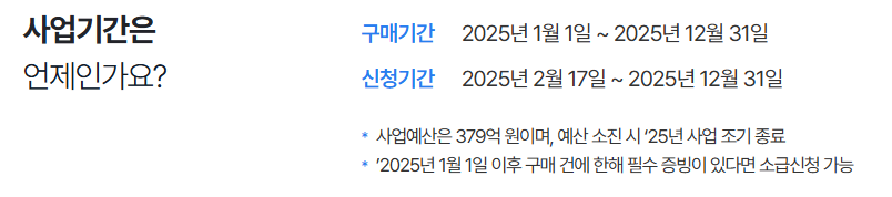 - 소급 적용: 2025년 1월 1일 이후 구매한 제품도 신청 가능