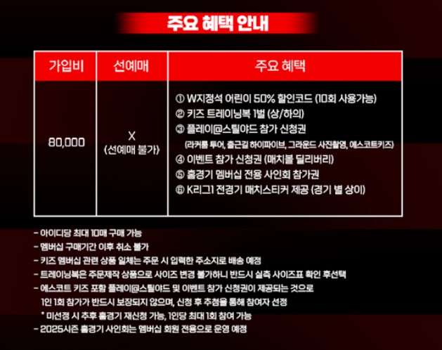 - 멤버십 혜택은 2025 시즌 K리그 1, 코리아컵, ACL 홈경기에서 모두 사용 가능합니다.