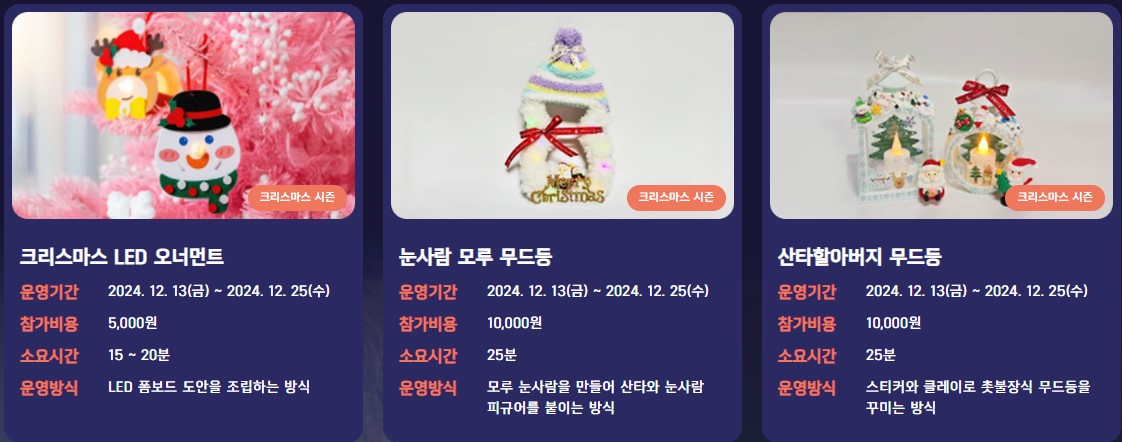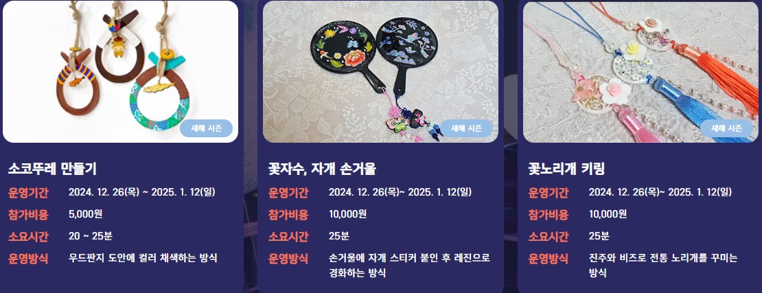 - 체험 프로그램: 인기 프로그램은 조기 마감될 수 있으므로 서둘러 참여