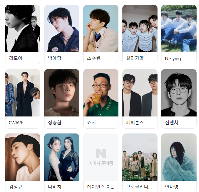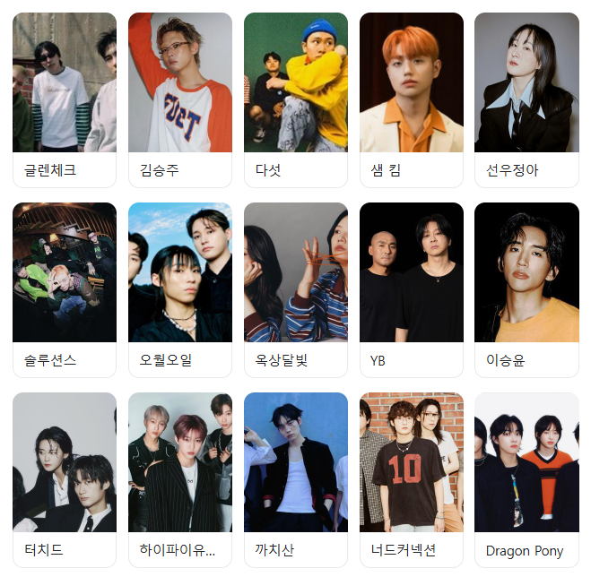 - 10CM, 선우정아, 소란, 옥상달빛 등 인디 대표 아티스트들