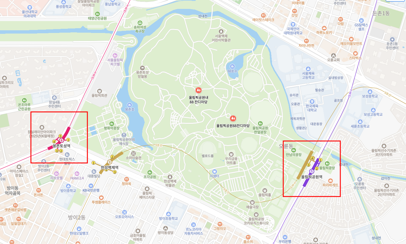 주차장 | 올림픽공원 주차장, 몽촌토성 주차장, 한국체대 등 |