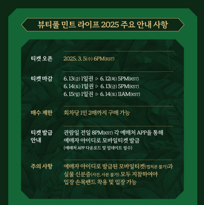 예매 시작일 | 2025년 3월 5일 (수) 오후 6시 |