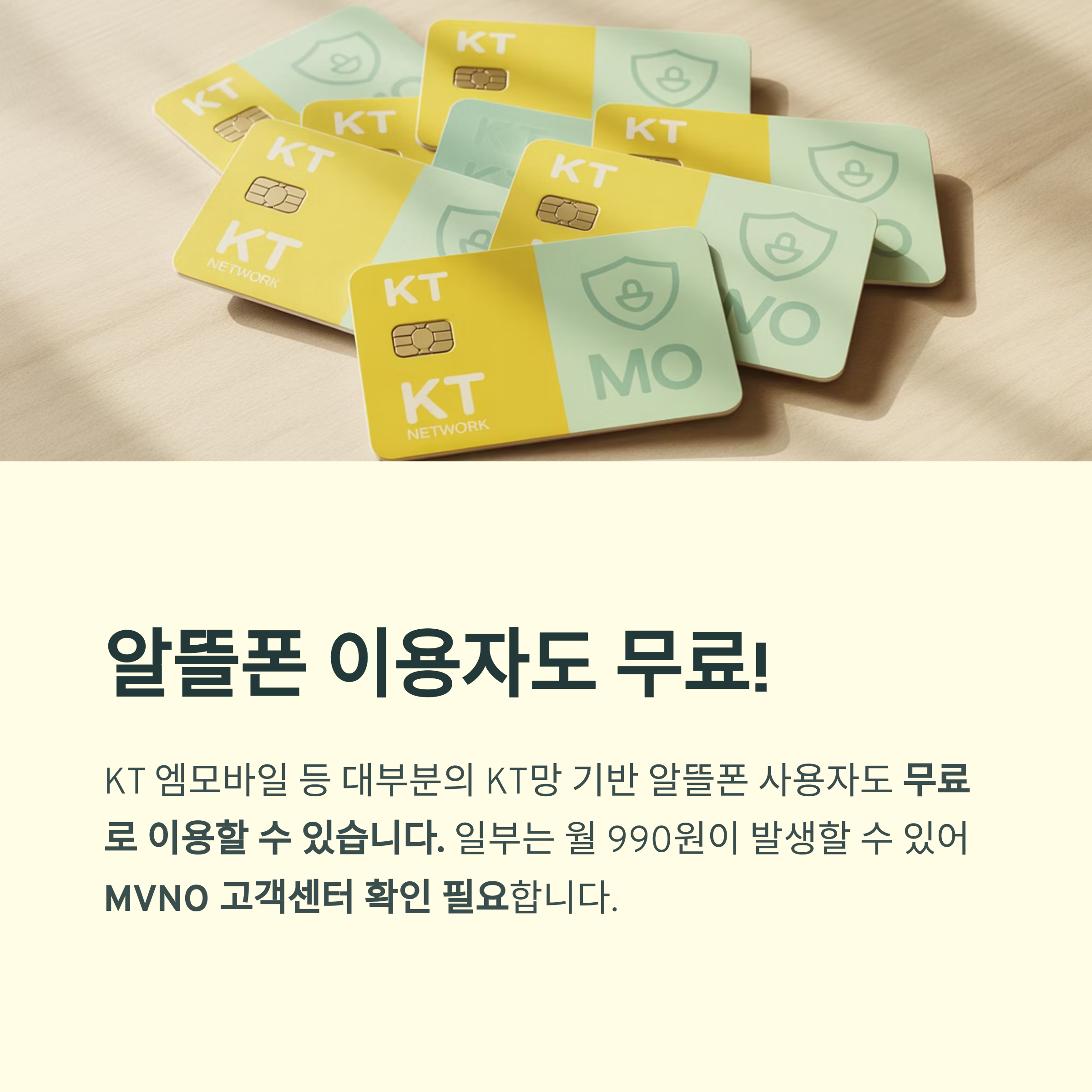 KT 엠모바일 등 대부분의 KT망 기반 알뜰폰 사용자도 유심보호서비스를 무료로 이용할 수 있습니다. 다만 일부 브랜드에서는 월 990원의 요금이 발생할 수 있으므로, 해당 MVNO 고객센터에 별도 확인이 필요합니다.