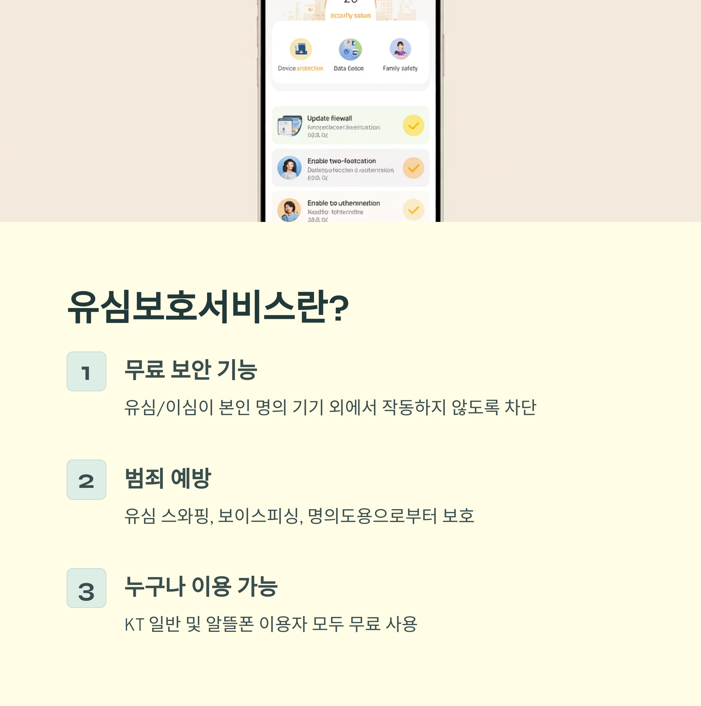 KT 유심보호서비스는 단순한 무료 기능이 아니라, 스마트폰 사용자의 안전을 지키는 가장 중요한 보안 수단입니다.