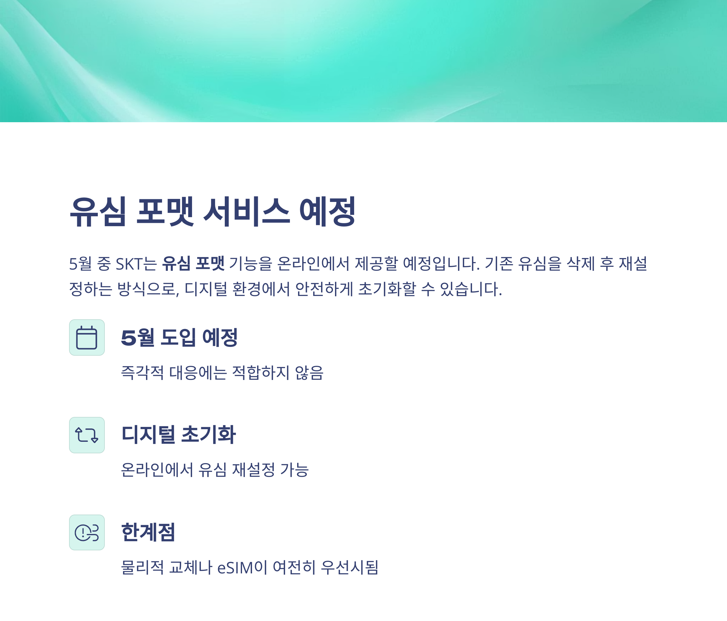 5월 중 SKT는 유심 포맷 기능을 온라인에서 제공할 예정입니다.